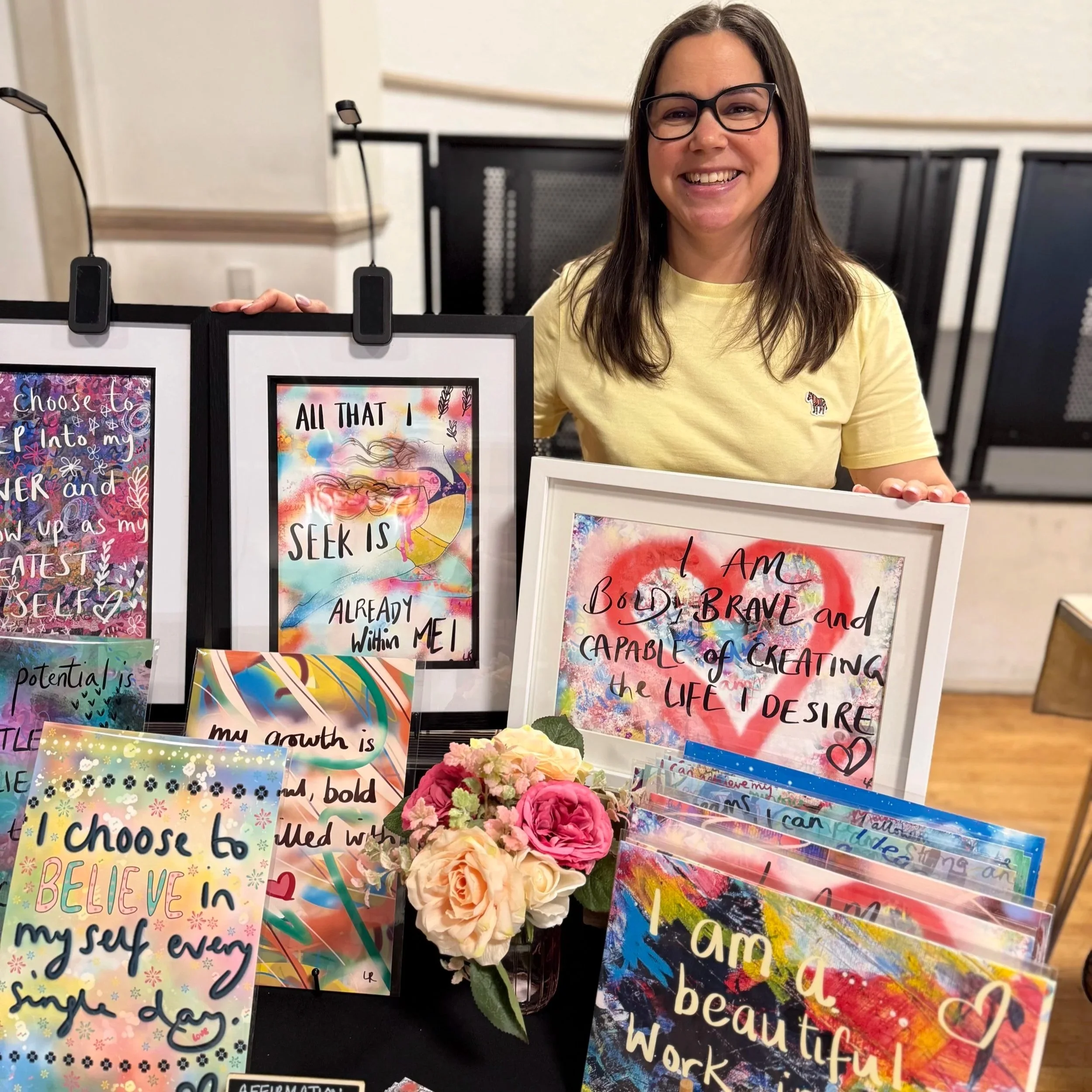 What began as quiet moments with a sketchbook grew into bold, intuitive artwork,a thriving print shop, and a calling to create supportive spaces where others can explore self‑expression without pressure or perfection.